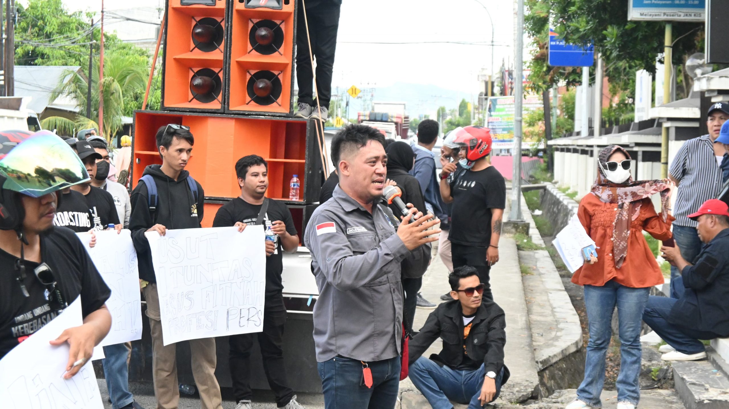 Ketua PJS Kabupaten Gorontalo, Alwin Ibrahim di hadapan sejumlah anggota Polri menegaskan jika hadirnya masa aksi di Polda Gorontalo bukan dalam rangka membuat onar.