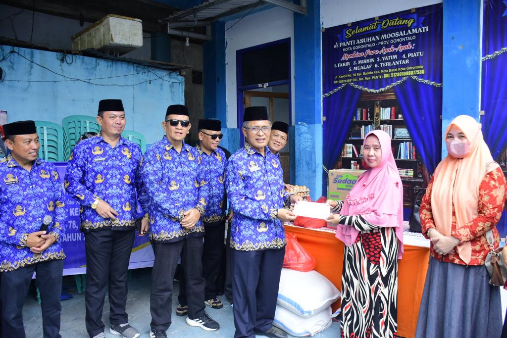 Rekam Fakta, Kota Gorontalo-  Sekretaris Daerah Kota Gorontalo, Ismail Majid bersama anggota Korpri Kota Gorontalo menyerahkan bantuan di sejumlah panti asuhan yang ada di Kota Gorontalo. Jumat (17/11/2023)