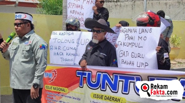 Rekam Fakta, Gorontalo– Federasi Serikat Pekerja Metal Indonesia (FSPMI) Gorontalo, bersama KSPI, menyelenggarakan aksi demonstrasi di depan Kantor Dinas Penanaman Modal ESDM dan Transmigrasi Provinsi Gorontalo, Rabu, (8/11/2023)