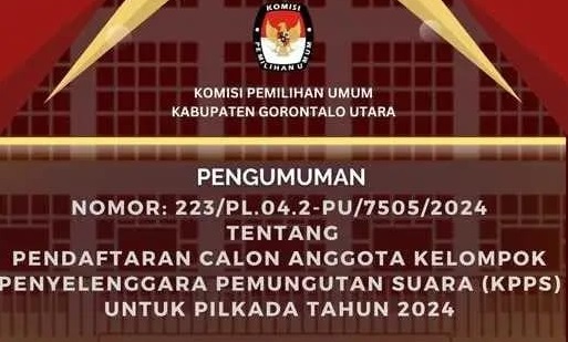 Rekam Fakta, Gorontalo Utara – Komisi Pemilihan Umum (KPU) Kabupaten Gorontalo Utara telah mengumumkan perekrutan calon anggota KPPS Kabupaten Gorontalo.